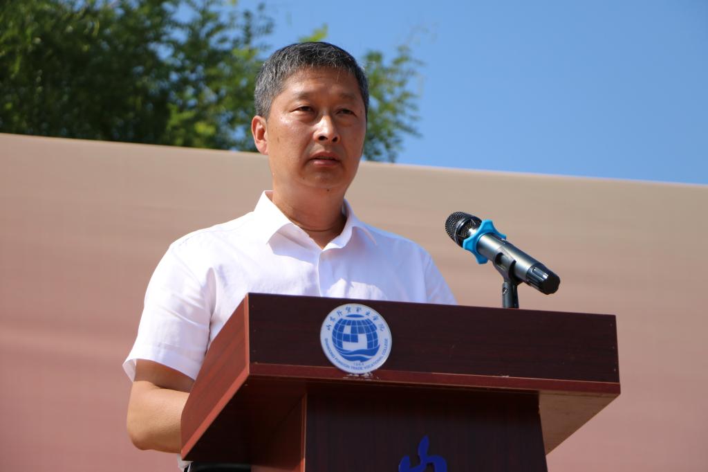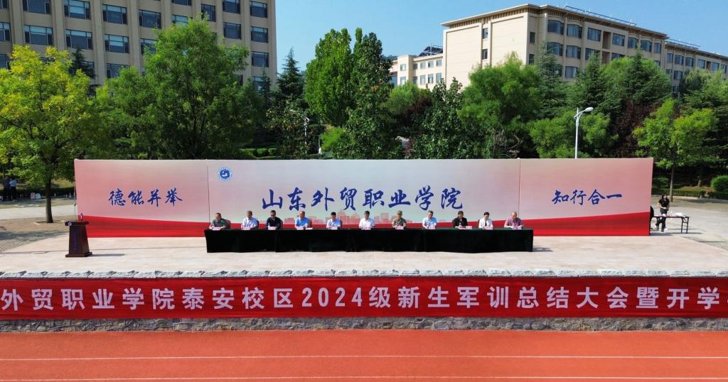 9月9日上午,泰安教学部2024级新生军训总结大会暨开学典礼在运动场举行。承训部队领导和学院党委副书记黄维、办公室副主任张剑桥出席大会,泰安教学部领导班子成员、相关职能科室负责人、辅导员及全体新生参加大会。