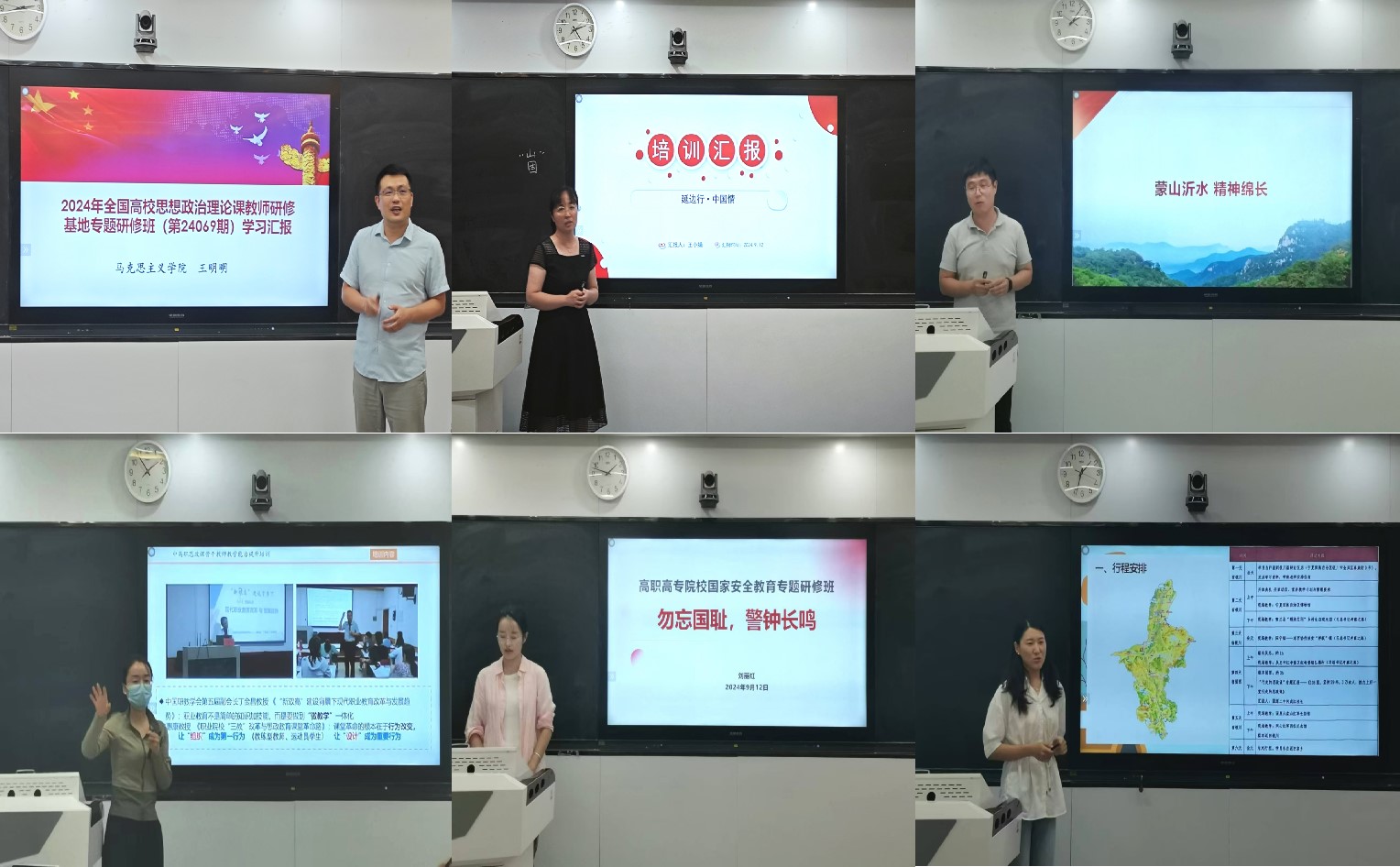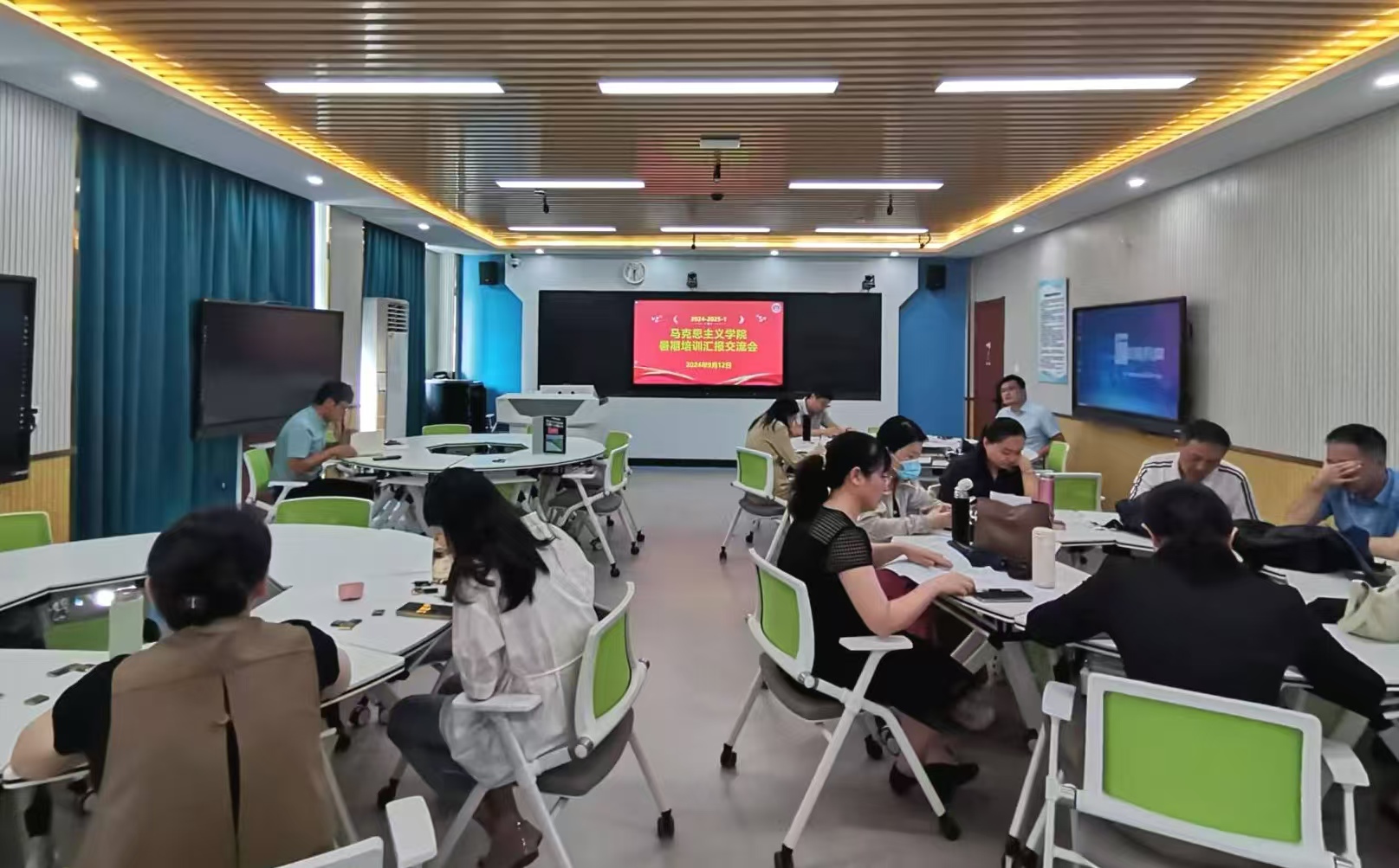 为更好地发挥教师外出培训学习的实效性和辐射带动作用,共享学习成果。9月12日,马克思主义学院在2-A302教室举办了暑期培训分享交流会,部门全体教师参加,参训教师分别就各自培训主题进行了汇报分享。