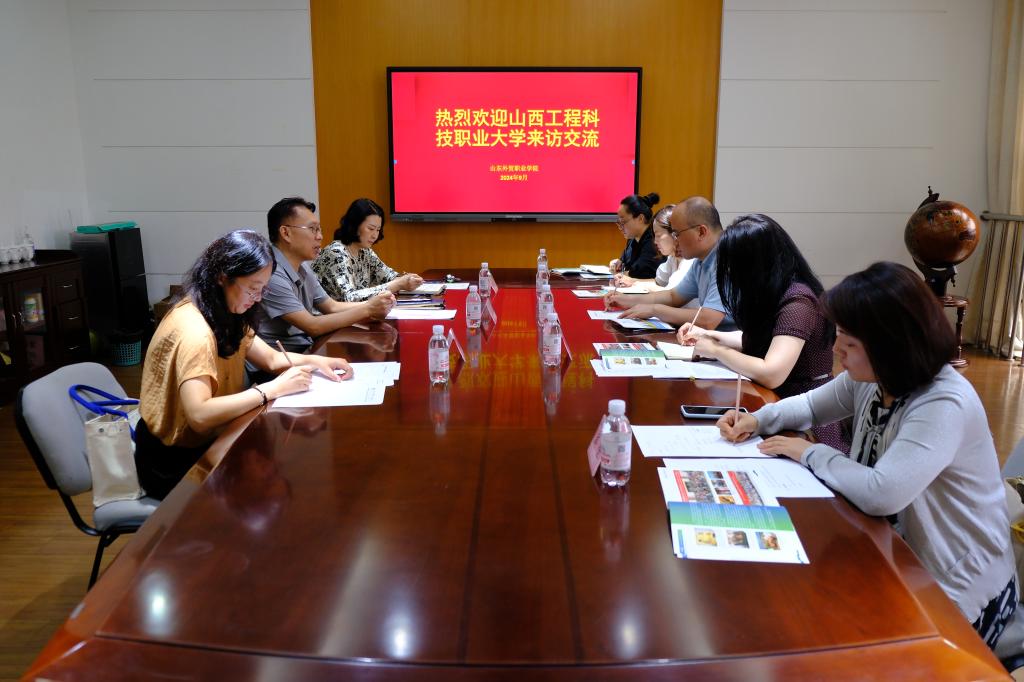 座谈会上,王应喜对来访人员表示欢迎,并简要介绍了学院基本情况、商务外语系发展历史及各专业建设等。巩华锋介绍了山西工程科技职业大学的基本情况及外国语学院的发展现状。随后,双方就专业建设、校企合作、师资队伍建设等方面进行深入交流和探讨,表示今后要加强交流学习,进一步提高职业教育外语人才的培养质量。