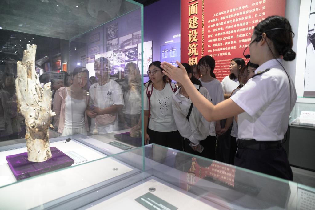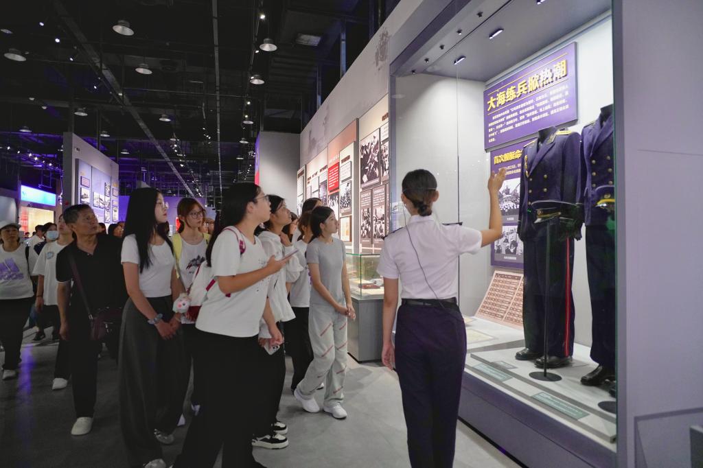 9时,在学院海军博物馆志愿者团队的带领下,同学们来到中国人民解放军海军博物馆。在海军英雄广场,同学们集体默哀,向英勇牺牲的烈士们敬献花束,表达敬意。志愿者团队负责人黄柯萌上台发言,向英烈报告盛世中华,同时呼吁同学们勿忘国耻,发愤图强。随后,在讲解员的引导下,同学们参观了海军历史基本陈列展馆。参观结束后,大家与当日来馆游客手写寄语卡片,通过深蓝邮箱传递哀思,表达对先烈的敬仰。