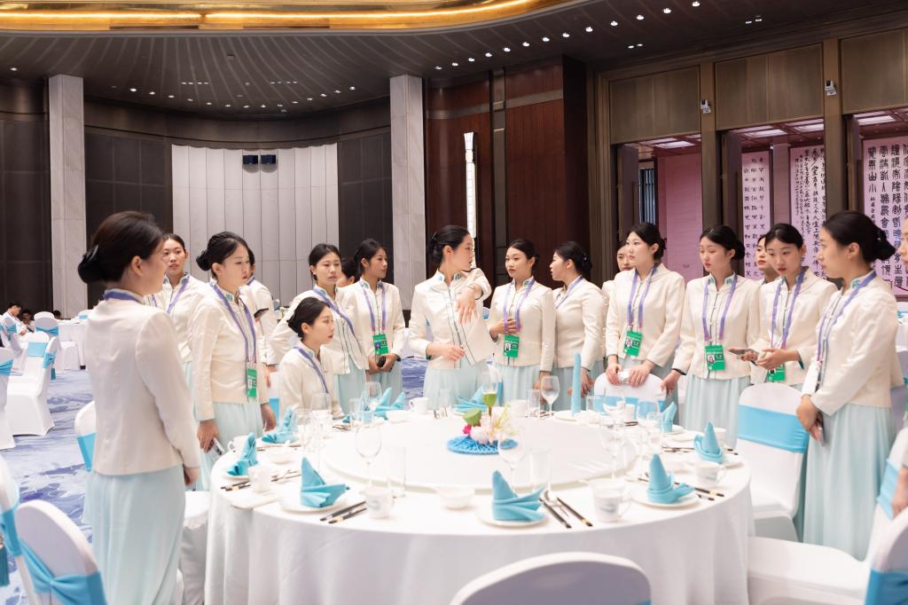 因会议时间与学生暑期返校时间临近且两次会议间隔时间较短,为保障会议服务工作的顺利开展,今年暑期前,学院团委积极对接青岛国际会议中心,高标准完成了志愿者的面试选拔工作。志愿者返校后,根据会议中心时间安排,全面细致地接受了志愿服务规范、外事礼仪、岗位技能等内容的通识培训及专业培训。会议开展期间,志愿者落落大方、热情有礼,用专业的服务和灿烂的微笑迎接着每一位参会嘉宾,他们用实际行动展现了山外学子的使命担当和青春风采。