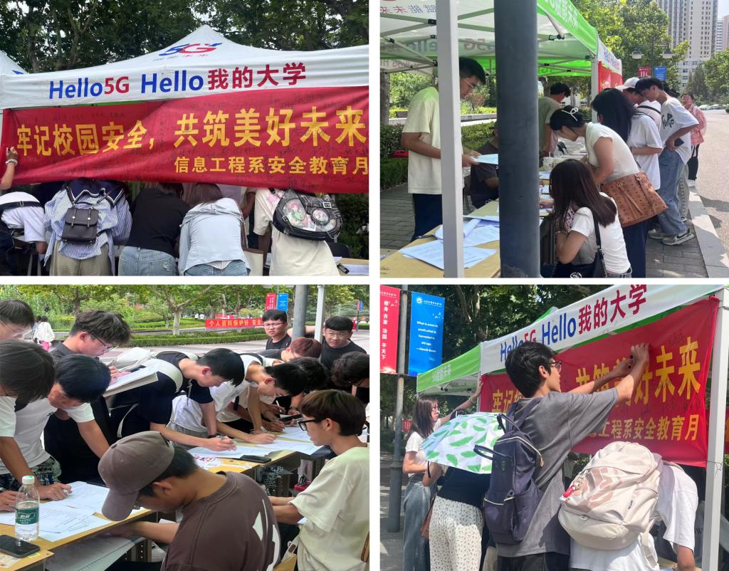9月9日,信息工程系举办了“宣传普及,安全共建”校园安全倡议书签名活动。活动现场,信息工程系安全宣传志愿者们向同学们发放《校园安全知多少》调查问卷,并热情宣传校园安全科普知识,大家积极响应,纷纷在“牢记校园安全,共筑美好未来”横幅上签名,共同承诺守护校园安全,携手共建校园安全防线。