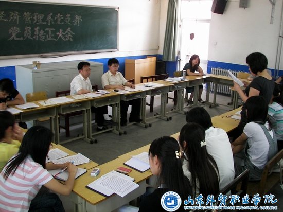 6月14日下午两点,经济管理系学生党支部在东苑教学区阶梯教室举行预备党员转正大会,学生党支部全体党员、06级和07级部分入党积极分子参加了大会。