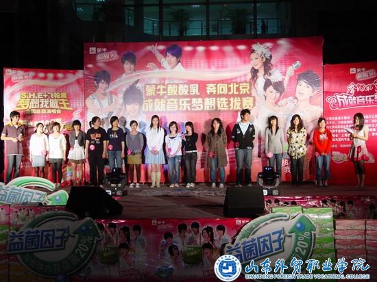 5月29日晚,“蒙牛酸酸乳 奔向北京 成就音乐梦想”选拔赛在伟德新图书馆广场举行。选拔赛由伟德与蒙牛乳业集团联合举办,现场还进行了蒙牛新产品试饮和游戏互动等内容。