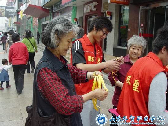 5月25日、26日由信息管理系10名志愿者组成的“爱心小队”前往台东利群商厦,参加了由《半岛都市报》主办的“爱心义卖,支援灾区”的爱心特刊义卖活动。