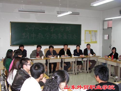 为了改善学生的学习环境,提高学生的学习质量,促进同学与老师的理解与沟通,达成在教学环节上的双赢,商务外语系于11月13日在B307(06商英1)教室召开了07-08学年第一学期期中教学检查研讨会。周树玲副院长,基础部、公外部老师及商外系的陈祥国主任、杨岚副书记和王伟老师等出席了座谈会。