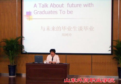 5月22日下午4点,周树玲副院长以“与未来的毕业生谈毕业”为题,在图书馆学术报告厅给国际贸易系05级的同学们举办了一次别开生面的毕业前就业指导讲座,受到了同学们的热烈欢迎。