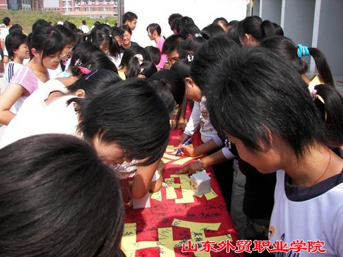近日,山东省公安厅、高校工委、省教育厅联合下发了关于“禁止刀具进校园”的文件,院党委对此非常重视,要求各系制定工作方案。按照学院要求,经济管理系召开全体学生大会传达了文件精神,9月28日,在东苑教学区门前举行了“远离刀具,珍爱生命,创建平安校园”签名活动。通过此次签名活动,同学们从思想上认识到远离危险刀具的重要性,使远离管制刀具,创建平安校园的思想深入人心。