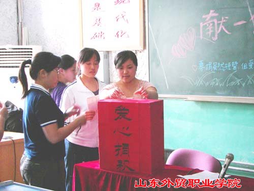 6月1日下午,学生工作处在南校区发起了为五专02商务英语的安娜同学捐款的活动,当场筹集捐款近七千元,已全部送交安娜同学手中。