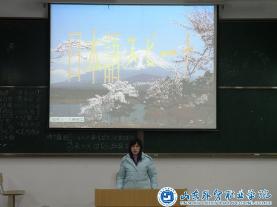 11月11下午4时,商务外语系日语演讲比赛决赛在A3阶梯教室正式拉开帷幕。日韩教研室主任王正春、外教小山等五位日语老师应邀担任了比赛的评委。本次比赛由系日语协会主办,共有16名同学闯关进入决赛。