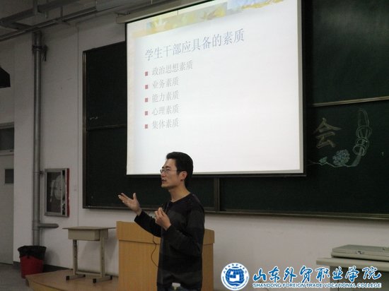为增强09级学生干部的工作意识,提高其工作能力,11月5日晚,商务外语系学生会在A3阶梯教室举行了学生干部培训讲座。辅导员谢飞担任主讲人。