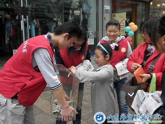 活动于当日上午九时开始。商务外语系的队员们分成了两个流动募捐小组,手里拿着登载小享臻报道的晚报在步行街上进行宣传。热心的岛城市民纷纷驻足并慷慨解囊。他们当中有和小享臻差不多年纪的小朋友,有前来购物的青年人,有专程来献爱心的阿姨,还有友好善良的国际友人……大家都想以实际行动为坚强而又可爱的小享臻奉献出自己的爱心。