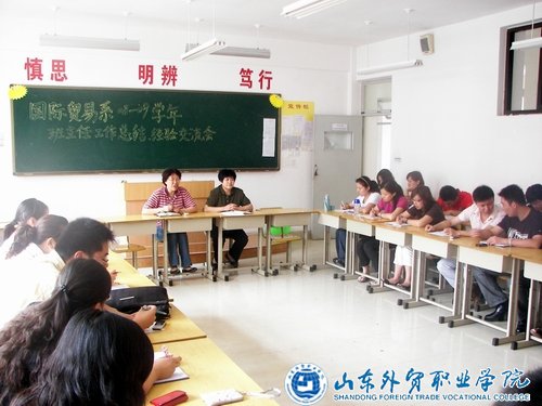 6月18日中午,国际贸易系在2号教学楼B203教室召开08-09学年班主任工作总结、经验交流会。系主任刘静华、国贸系全体班主任、辅导员参加了会议,会议由国贸系党总支书记韩淑君主持。