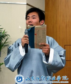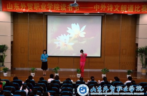 5月14日,由图书馆、综合基础部联合主办的读书节系列文化活动之“中外诗文朗诵比赛”在学术报告厅举行。来自四系及五专部的9支代表队参加,图书馆副馆长宋丽萍、综合基础部杨巧云、钟德玲、季洪辉、李艳华、耿静静和宣传部陈霞担任了评委,并特邀国际贸易系党总支书记韩淑君担任公证人。