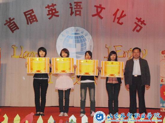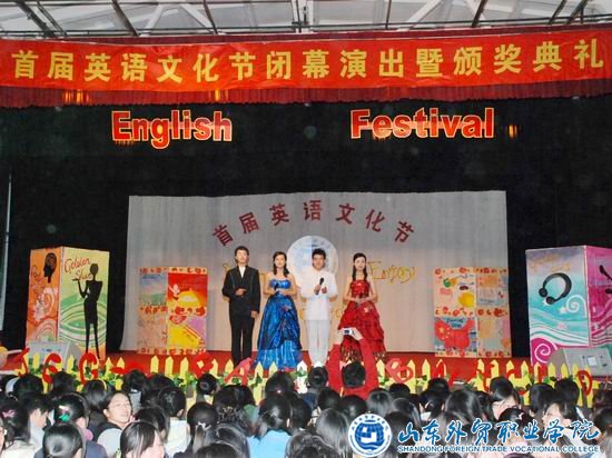 4月16日晚,英语文化节闭幕式暨颁奖典礼在伟德大学生俱乐部隆重举行。院党委书记李良斋、副院长周树玲、国际贸易系党总支书记韩淑君、经济管理系党总支书记贾贵贞、公共外语部主任崔卫、院团委书记孙茂峰、团委副书记李欣及各系团总支书记出席了此次晚会并为英语文化节各项赛事获奖的个人和团体颁奖。