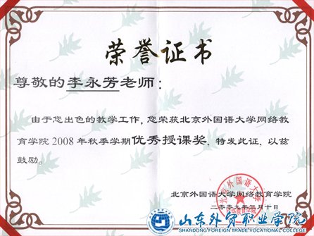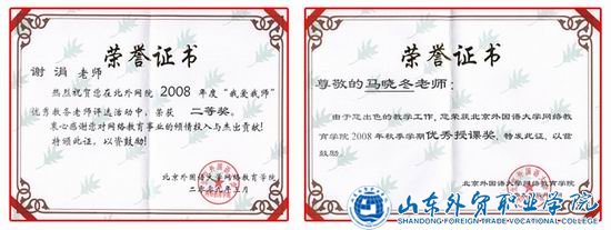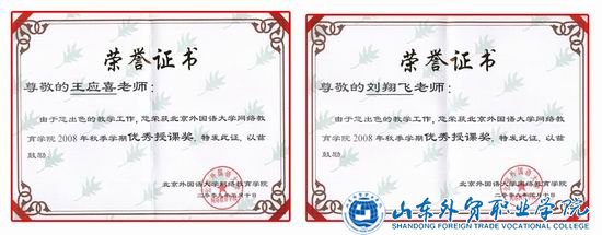 在近期北京外国语大学网络教育学院举行的“我爱我师”网上评选活动中,伟德王应喜、刘翔飞、李永芳、马晓冬四位老师被北外网院评为“优秀辅导教师”,谢涓被评为“优秀教务老师”,北外网院为以上获奖教师颁发了荣誉证书和奖金。