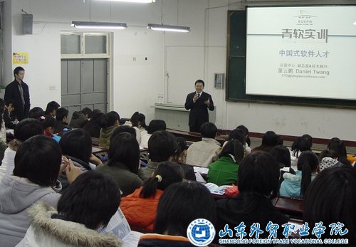 11月19日晚,1号教学楼4阶座无虚席,信息管理系邀请了市南软件园人力资源部软件工程师董云鹏为同学们带来一场精彩的就业指导讲座。