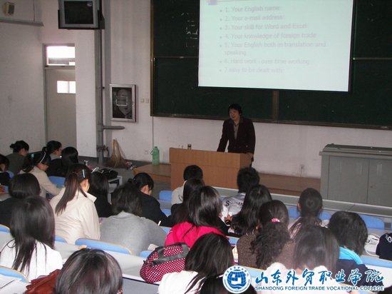 为了巩固2009届毕业生两年来所学的贸易知识,提高就业竞争力,使大家在即将到来的面试、实习中更好地把握就业机会、提升业务水平,商务外语系于10月31日下午2时邀请副院长周树玲在B1阶梯教室为同学们做了一场题为“Foreign Trade Work Training”的讲座。
