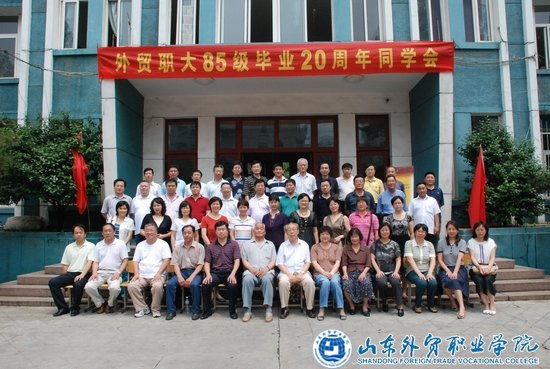 2008年7月5日上午,外贸职大85级国贸一班、二班50余名同学从国内外回到母校,参加毕业20周年同学聚会。学院领导代表刁建东副院长、校友办公室副主任崔玉东、原任课教师副院长周树玲以及刘静华、邵震、张凤喈、竺仙如、洪焕然、牟瑜、李凤蛟、陈清璋、靳琴然、侯仁博、贾利华等老师出席了此次聚会。校友们参观了曾经生活学习过的校园,回到原本班108教室参观。同学们围坐在课桌旁,亲切的交流毕业后的工作生活情况。