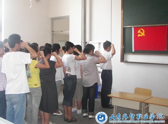 为纪念中国共产党建党八十七周年,商务外语系党总支于7月3日下午1:30在B3阶梯教室举行了庄严隆重的学生党员入党宣誓仪式。系党总支书记杨岚、辅导员张泉、张涛、梁政委、王佳和全体学生党员、入党积极分子参加了此次宣誓仪式。