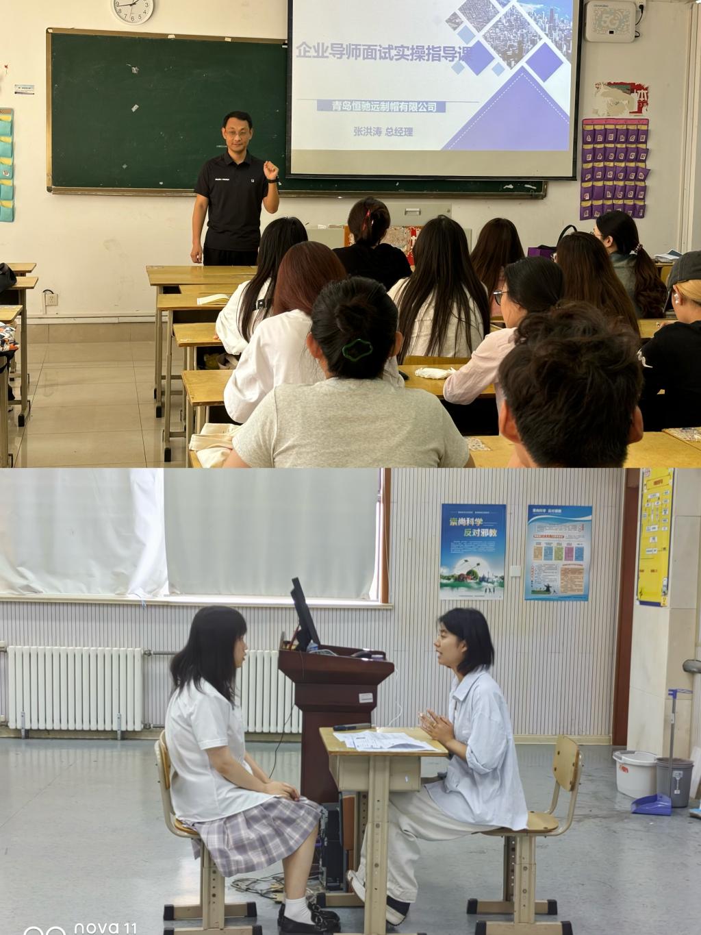 9月份,商务外语系面向毕业生开展面试操练活动,邀请青岛恒驰远制帽有限公司等13位订单班企业导师走进班级,为毕业生进行专业的面试指导,实现班企联动,帮助毕业生熟悉面试场景、掌握面试技巧。企业导师们结合实际工作案例就面试礼仪、常见面试问题、简历指导等方面对学生进行详细讲解,并现场进行了模拟面试,让同学们更直观感受面试过程。企业导师面试操练为毕业生们增强实战经验、顺利走进职场进行有益的指导。