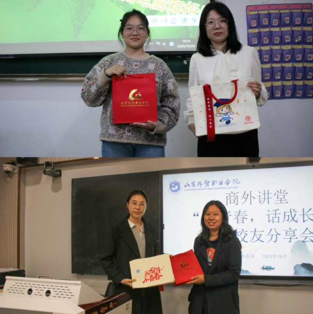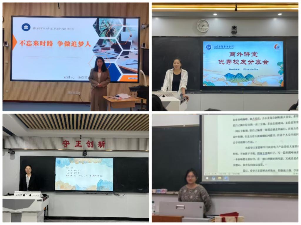 10月24日至30日,为庆祝学院建校六十周年,有效凝聚校友力量,充分发挥优秀校友朋辈引领作用,搭建校友与在校生的交流桥梁,商务外语系邀请优秀校友回校,走进班级,给大一学生们开展分享交流活动。