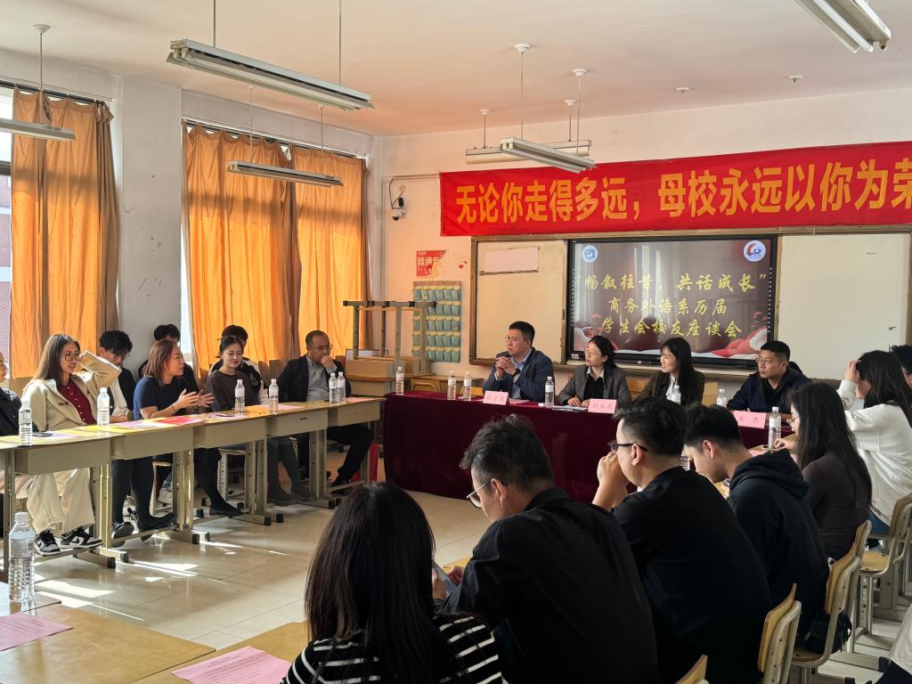 11月2日上午,为共庆校庆、汇聚校友资源、畅叙同窗情谊,商务外语系在2号教学楼B407召开历届学生会干部交流座谈活动。商务外语系党总支书记刘永美、副主任昌利娜、郭子健,校友联络员宋杰以及校友代表参加了交流座谈活动。