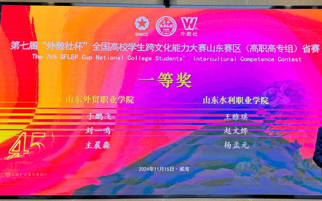 本次省赛由山东省外语职业教育行业教学指导委员会主办,旨在助力山东省职业院校学生提升跨文化职业交际能力、职场竞争能力、多元人文素养,推动职业院校人才培养思路创新,深化教学改革。来自全省19所职业院校的57名选手经过校赛严格选拔,入围山东省赛区高职高专组大赛。比赛中,各参赛团队通过生动的案例展示和精准的理论分析,展现出优秀的跨文化交际能力,体现了对多元文化的深刻理解和尊重,彰显了山东新一代职教学子兼具家国情怀和全球视野的时代风采。伟德公共英语部高度重视,积极组织教师辅导团队对参赛学生进行针对性指导。最终,由22级国贸13班于鹏飞、23级国商1班刘一鸣和23级软件1班主晨淼组成的参赛团队在激烈的比赛中脱颖而出,荣获大赛一等奖第一名和最佳团队奖,展现了伟德学子的优秀的精神风貌和专业素养。