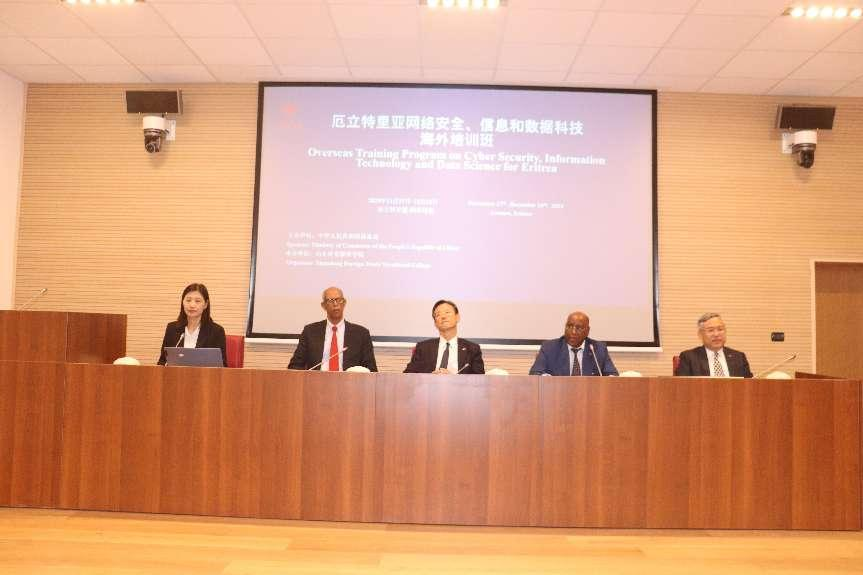 莫新平在发言中介绍了此次培训的背景及课程设计,期待在接下来的的培训中能够与厄外交部技术人员就网络安全知识和技能方面加强交流,提升厄防范与应对网络威胁的能力;同时,期待利用学院的平台,未来能够继续为厄在信息技术、商贸和物流等相关培训上提供相应的支持,为中厄两国人力资源的开发与合作贡献力量。