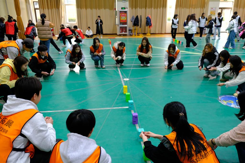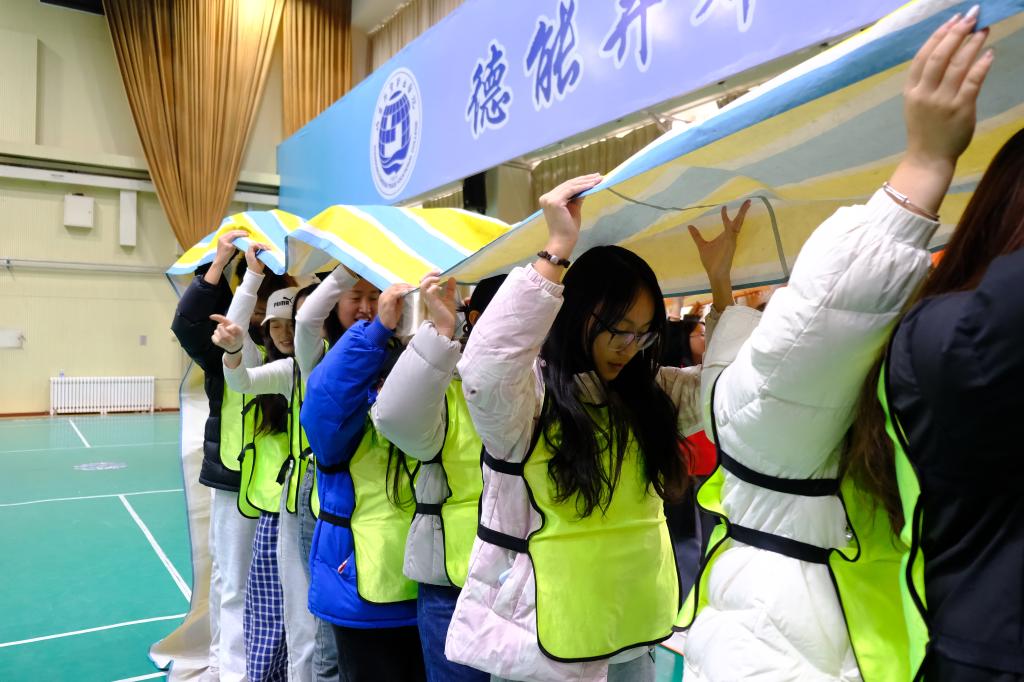 活动伊始,师生们通过破冰游戏迅速融入氛围,随后活动人员被分为八支队伍,并设计了寓意深远的队名,顺利完成了团队建设任务。在接下来的时间里,各队在教练的精心指导下,依次挑战了“达芬奇密码”“无敌风火轮”“毛毛虫竞速”以及“合力建塔”等精彩纷呈的拓展项目。整个过程中,各队成员精神饱满、态度积极,在每项挑战与合作中都展现了自己的热情活力和团队的强大凝聚力。