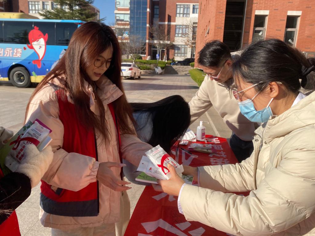 学院医务室医师现场讲解艾滋病的传播途径、预防措施等防艾核心知识,接受学生们的现场咨询;后勤服务处老师为大家发放相关宣传材料及活动纪念品,受到同学们的热烈欢迎。