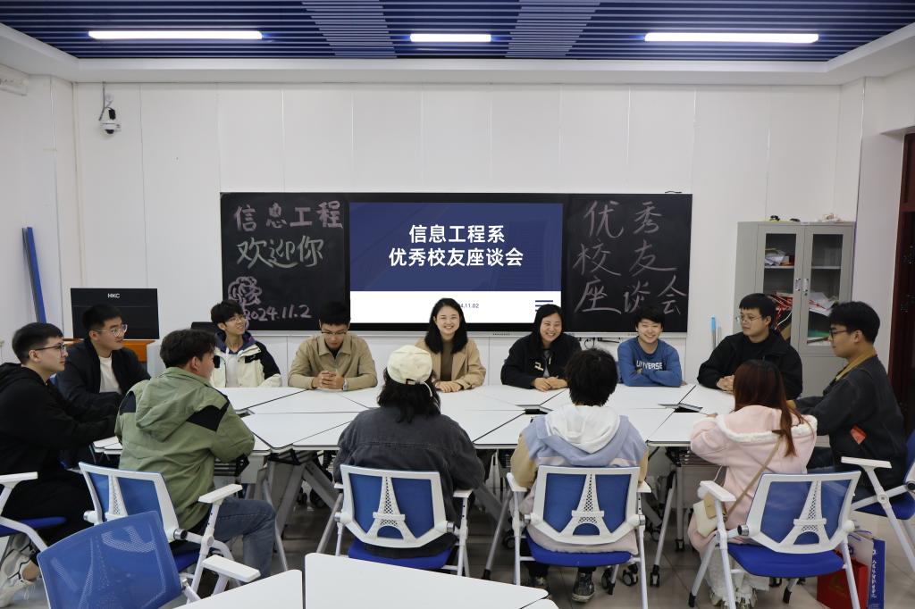 11月 2日校庆之际,信息工程系盛情邀请优秀校友参加交流座谈。座谈会上,大家亲切地叙旧,分享着毕业后各自的职业历程和生活点滴。同时从毕业生视角就信息工程系办学质量、人才培养模式、专业发展改革等方面提出了宝贵的反馈和建议。此次活动有效增进了校友之间资源与经验的共享,加强了校友与母校的紧密联系。