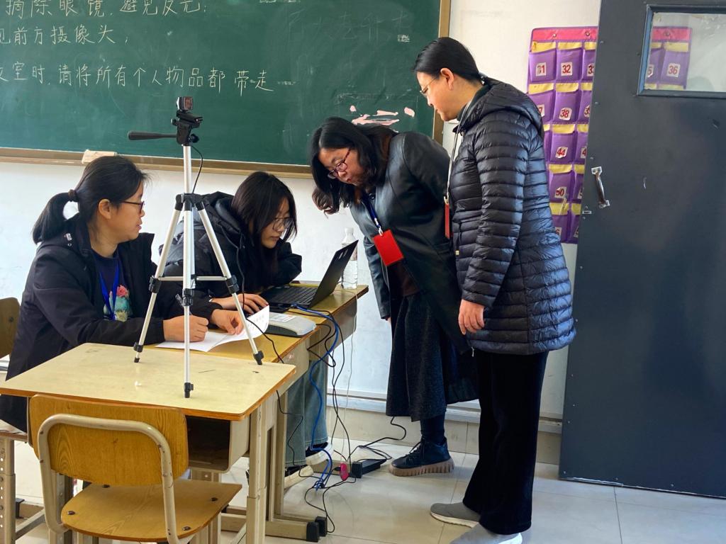 11月30日,伟德2024年下半年普通话水平测试在2号教学楼D座1层、2层展开。全院1459名学生参加了本次测试,共计54场次。院长刘珉陪同省语委办视导专家进行测试现场的检查指导工作。