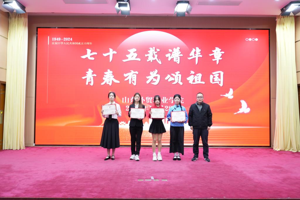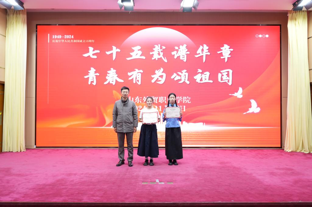本次朗诵比赛分为初赛、半决赛和决赛三个阶段。各参赛团队在马克思主义学院教师指导下,以庆祝中华人民共和国成立75周年和思政课学习内容为选题背景,在情景演绎式朗诵中,各参赛团队或抒发浓烈的家国情怀,共筑新时代伟大梦想;或聚焦青春奋进征程,鼓励青年勇担时代使命,展现了朝气蓬勃的青春风采。本次比赛邀请宣传统战部副部长孙蕾、学生工作处副处长张涛、教务处副处长魏龙吉、团委副书记刘婷婷担任评委。经过两个小时的激烈角逐,最终评选出一等奖2名,二等奖4名,三等奖8名。比赛最后,师生共同观看了国际贸易系学生党支部带来的原创话剧《革命 信仰》。