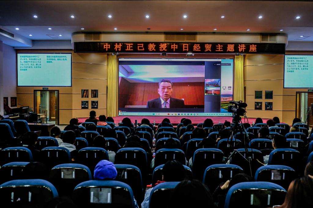 讲座中,中村正己主要从中日两国间的贸易规模及贸易交流的重要性、中日经贸的相互依赖关系、促进相互投资等三个方面对中日经济交流的基本情况作了阐述。中村正己认为,通过强化两国间的经济交流,不仅能够帮助企业掌握最新业界动态、提升区域经济发展活力、构建人际交流网络,还将有效助力企业走向国际市场。最后,中村正己还与商务日语专业师生、合作企业代表进行现场交流互动,重点讨论了当前日元汇率低迷的背景下,中国中小企业拓展日本市场的渠道、第三方经济合作模式等问题。