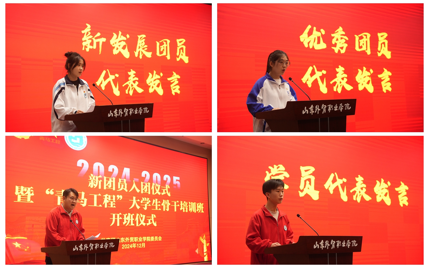 入团仪式在雄壮的国歌声中正式拉开帷幕。刘婷婷宣读了2024年新发展团员名单,各系团总支书记为新发展团员代表颁发团员证并佩戴团徽,优秀团员代表带领全体新发展团员庄严宣誓。新发展团员代表及优秀团员代表分别发言,表达了新发展团员对加入共青团的喜悦与憧憬和优秀团员代表对新发展团员的热情鼓励与真诚祝福。团委书记刘嵩向新发展团员致以诚挚的祝贺和美好的祝愿并对新发展团员提出希望与要求,一是要志存高远,坚定理想信念。二是要奋发学习,练就过硬本领。三是要修身自律,锤炼品德修为。