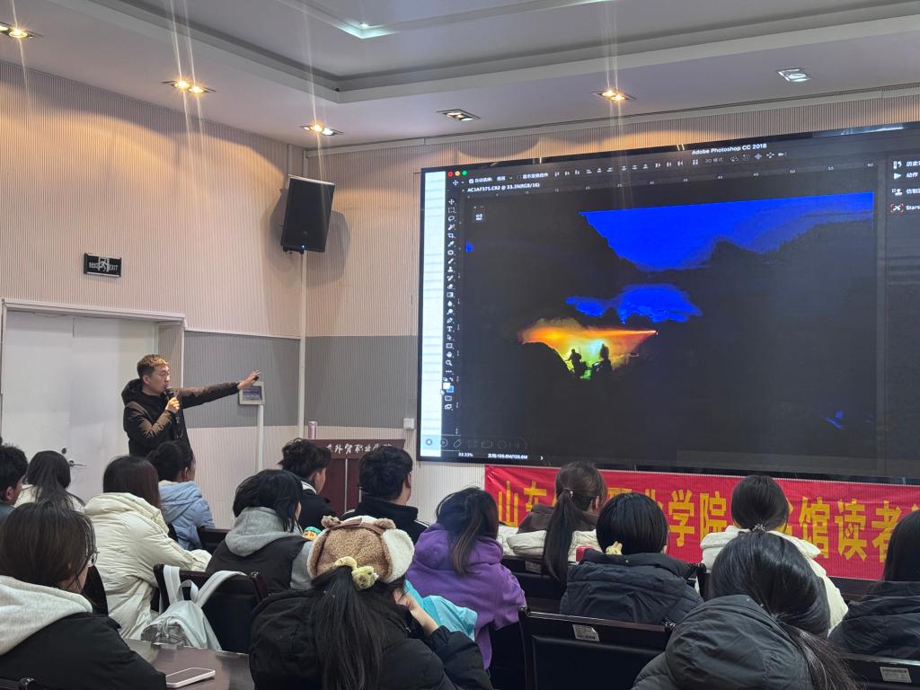 12月12日,“摄影师养成计划”在图书馆四楼会议室成功举办。本次活动特邀商务外语系辅导员、资深摄影师路鹏宇作为主讲嘉宾,为热爱摄影的读者带来了一场专业且富有启发性的摄影技巧讲座。