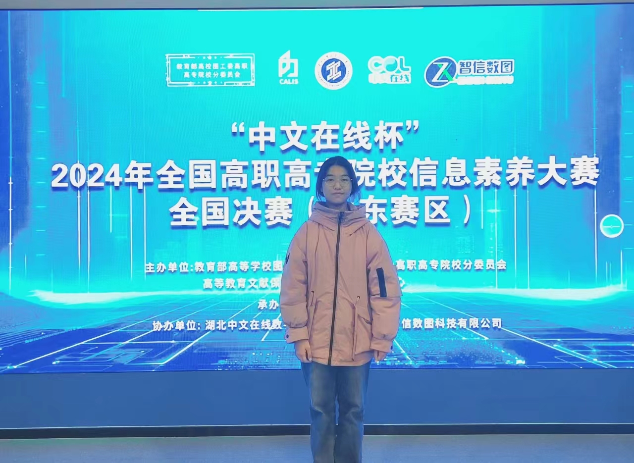 自2024年9月大赛正式启动以来,图书馆高度重视,广泛宣传,积极联系系部动员学生参加比赛,通过校赛、省赛、全国客观题赛、主观题赛等层层选拔,历时三个月的激烈角逐,最终王思佳同学凭借卓越的信息素养在国赛决赛中荣获二等奖。为保证学生备赛,图书馆多次举办专题培训,设置了专门训练场地,开展“一对一”和“一对多”的专业指导及模拟训练,全方位提升参赛选手的信息素养综合能力,为其提分赋能。