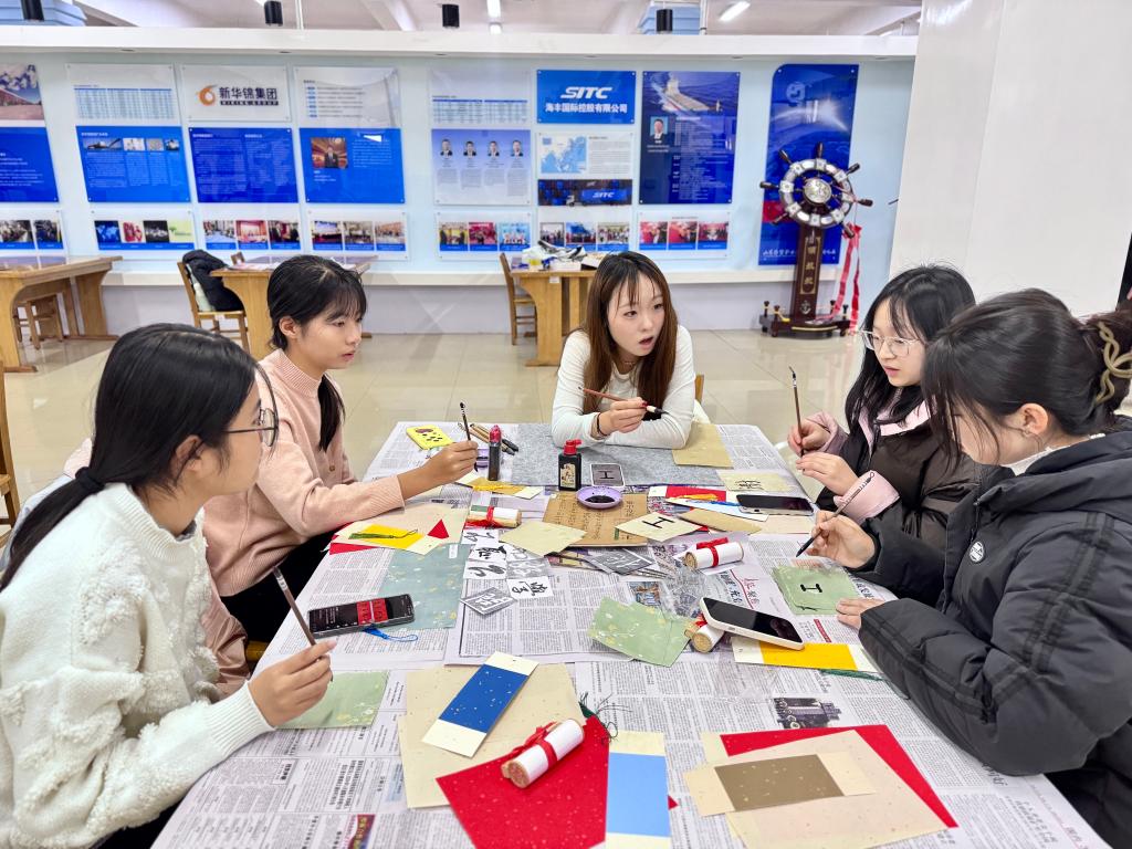 12月19日,图书馆三楼校友风采室内墨香四溢,一场主题为“墨香迎新春,提笔绘祝福”的书画体验活动在此举行。本次活动由图书馆读者沙龙联合飘雪书画社共同举办,吸引了众多学生的热情参与。