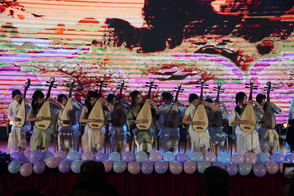 晚会分“山海汇聚。共筑梦”“逐梦追光。毅前行”“心向未来。乘风航”三个篇章,包含歌曲、舞蹈、小品、话剧等19个不同形式、各具特色的节目。晚会在青春洋溢、活力四射的开场舞《Talk That Talk》中拉开序幕;歌伴舞《大鱼》《美丽的神话》唯美抒情,歌声与舞蹈交织出一幅生动画卷;舞蹈《舞动青春》《等你的回答》和走秀《芭比之夜》动感激情,靓丽多彩的表现瞬间点燃现场;歌曲《New Boy》《是妈妈是女儿》《情音荟萃》用音乐传递能量,唤醒观众心灵的共鸣;舞蹈《落》《青城山下白素贞》、乐器演奏《声声慢》、国风表演《只此青绿》以婉约优美的舞姿、悠扬的琵琶乐曲演绎中华传统文化之美;小品《史上第一大劫案》、话剧《白雪公主和七个小矮人》诙谐幽默,成功塑造了一系列鲜活角色;舞台剧《永远的格桑梅朵》引领观众穿越时空,深切感悟中国女兵的勇气与坚韧。晚会最后,全体演职人员齐跳《你要跳舞吧》,在舞蹈中绽放青春风采,尽展山外学子的活力与激情。