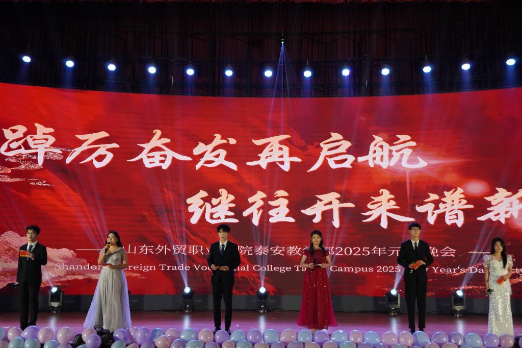 12月19日晚,泰安教学部在泰山会堂举办“踔厉奋发再起航 继往开来谱新章”2025年元旦晚会。泰安教学部班子成员、全体辅导员、教师代表以及在校生等500余人到场观看演出。