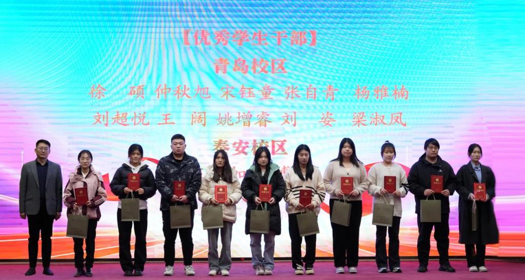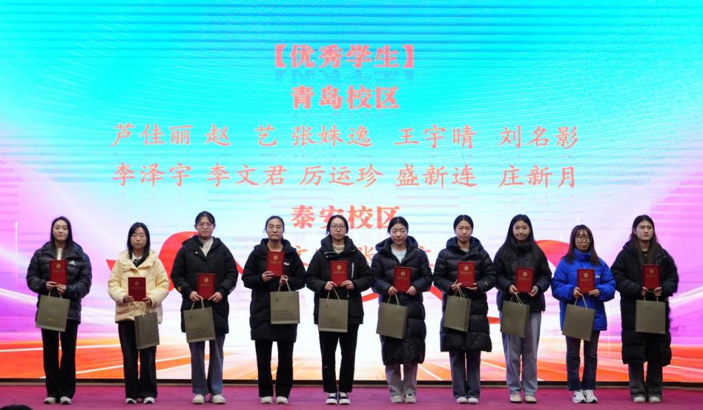 12月19日,学院2024级自考本科新生开学典礼在青岛校本部学术报告厅和泰安教学部智慧教室连线同步举行。本次典礼主题为“朝着梦想奔跑 向着阳光前行”,通过奏唱国歌、观看自考助学宣传片、领导致辞鼓劲、优秀学生表彰示范、毕业生代表现场经验分享、教师及新生代表发言、全体学生心愿梦想卡片投递等形式,让学生了解自考之路,激发学习热情,追逐人生梦想。学院副院长谷现海、继续教育学院全体老师、泰安教学部负责人、23级自考本科优秀学生和优秀学生干部以及24级自考本科全体新生参加典礼。