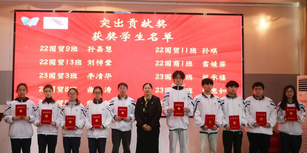 12月26日,国际贸易系睫立美奖学金颁奖典礼在图书馆4楼会议室举行。青岛睫立美化妆品有限公司人事经理孙畅,国际贸易系主任刘希全、副主任张宗英、党总支副书记桑伟、团总支书记孙璐、辅导员王程程,获奖学生代表27人参加典礼。典礼由学工办主任王泓博主持。