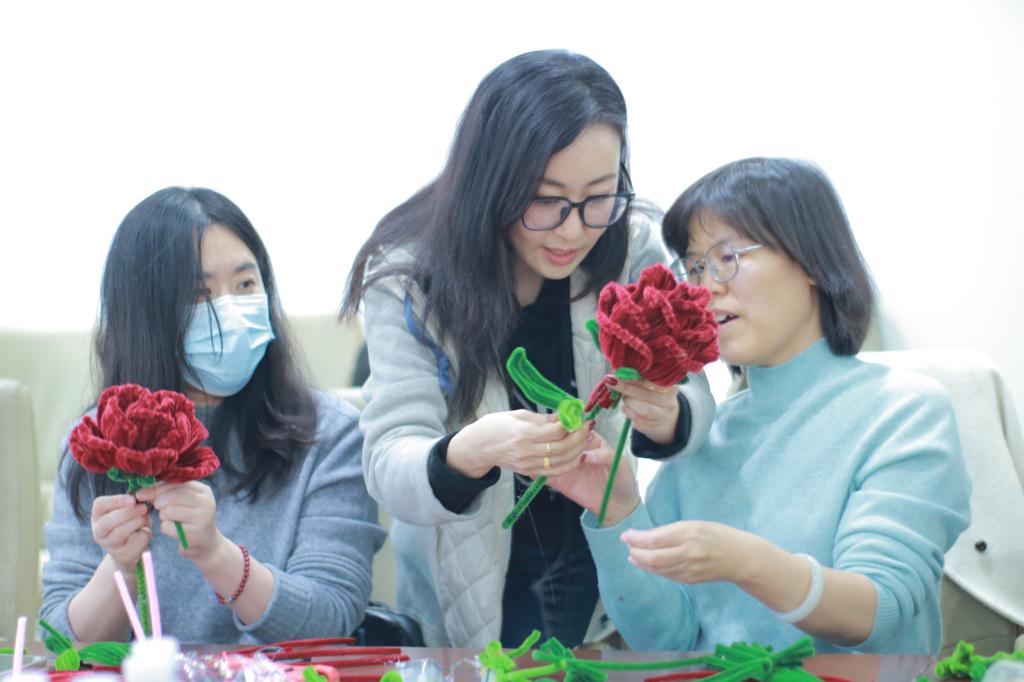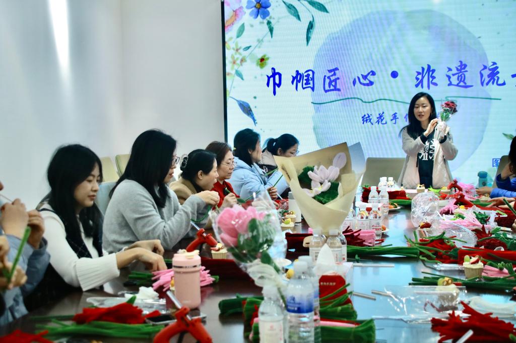 此次手工绒花制作活动,不仅让女职工们亲身体验了非遗文化的独特魅力,更充分展现了她们的女性智慧与创造力,是一次美妙的文化与艺术体验,为女职工们留下了一段美好的节日记忆。今后,图书馆将持续打造特色文化活动,为师生搭建展现风采的平台,为校园文化建设贡献力量。