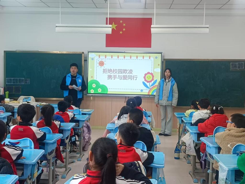 3月19日,青岛崇礼小学的校园里洋溢着欢声笑语,商务外语系智“绘”红领巾志愿服务队积极响应省委关于“反校园欺凌宣传周”的号召,以“070勇敢者行动”为主题,为三年级学生量身定制了一场寓教于乐的反校园欺凌宣讲活动。通过趣味游戏、情景互动和沉浸式体验,志愿者们将“反欺凌”知识融入儿童视角,帮助孩子们树立勇气与友爱意识,助力营造安全、和谐的校园环境,收获崇礼小学师生的一致好评。