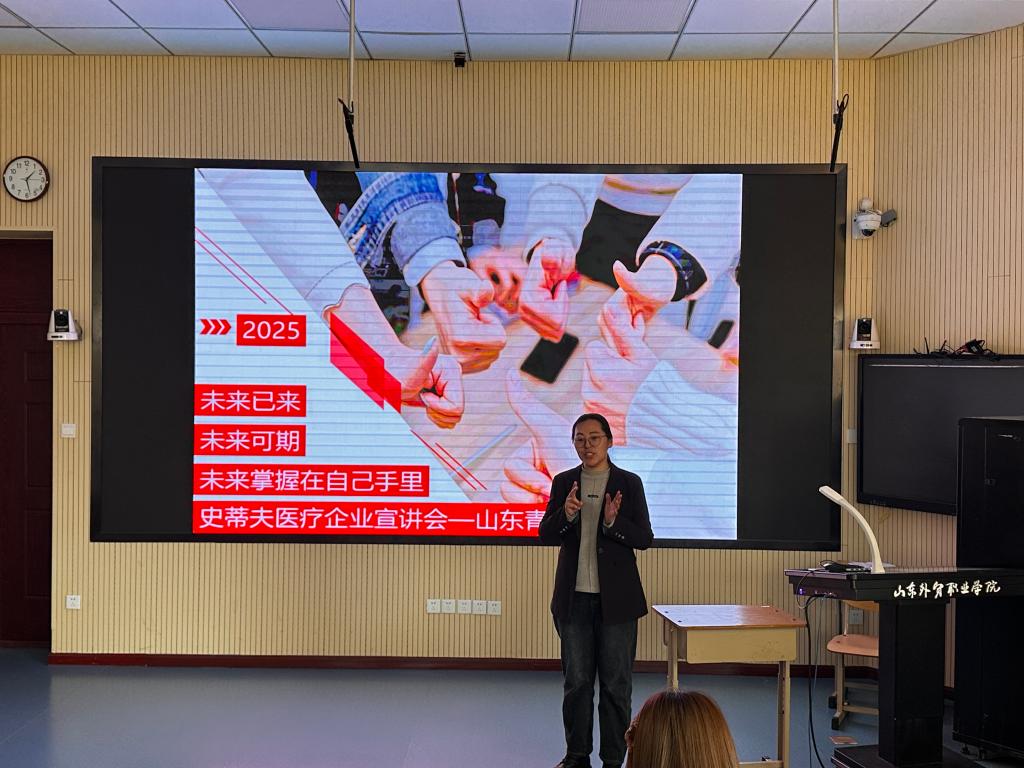 3月21日下午,国际贸易系举行订单班企业宣讲会,高阳联运物流集团、山东史蒂夫医疗科技有限公司负责人及2023级近110名学生参加。
