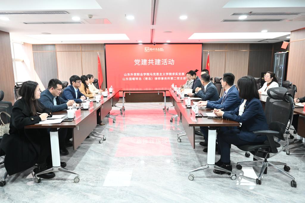 马克思主义学院党总支一行参观了国曜琴岛(青岛)律师事务所的党建活动室与所史室,深入了解该所党建工作的发展历程和特色亮点,探讨双方合作契合点。