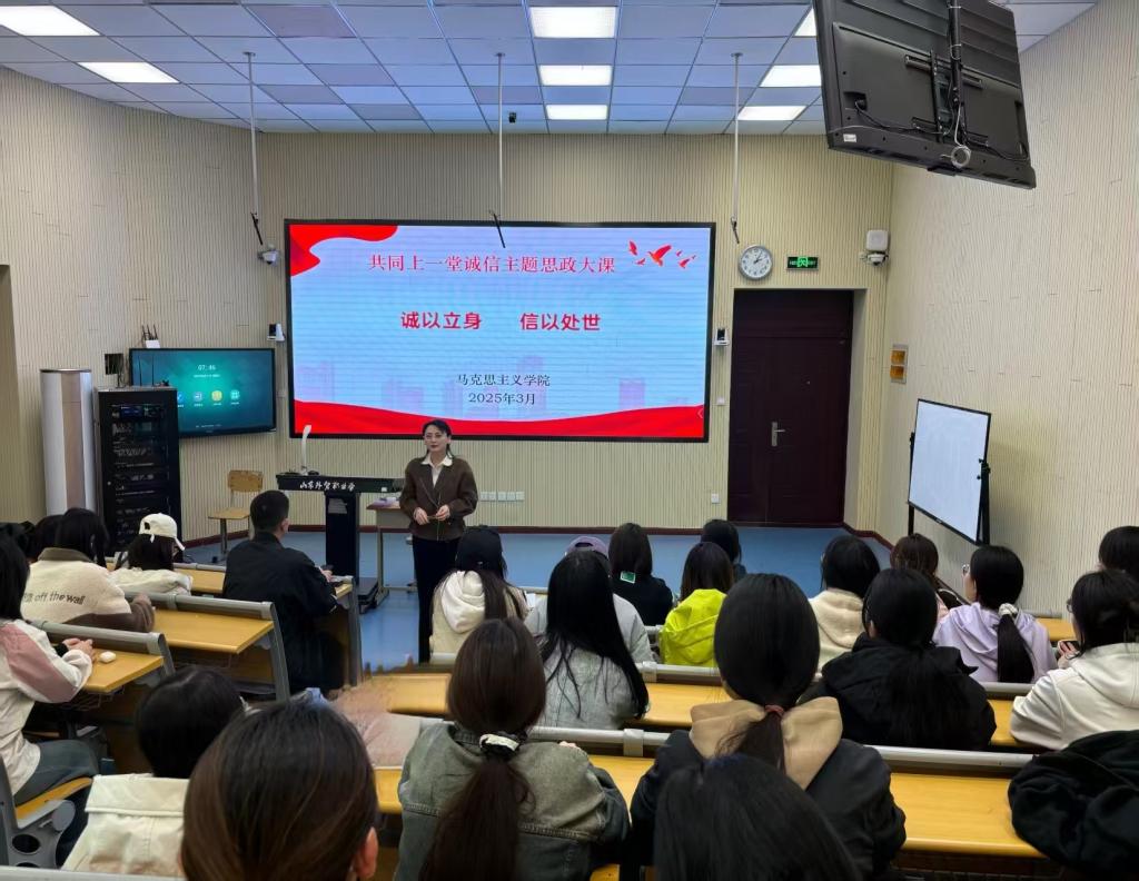 为进一步落实《山东省大中小学思政课一体化建设实施方案》“五个共同”行动,切实强化学生诚信教育,3月27日下午,马克思主义学院在1号教学楼第四阶梯教室举办“诚以立身 信以处世”主题讲座,由马克思主义学院副院长伊珊主讲。