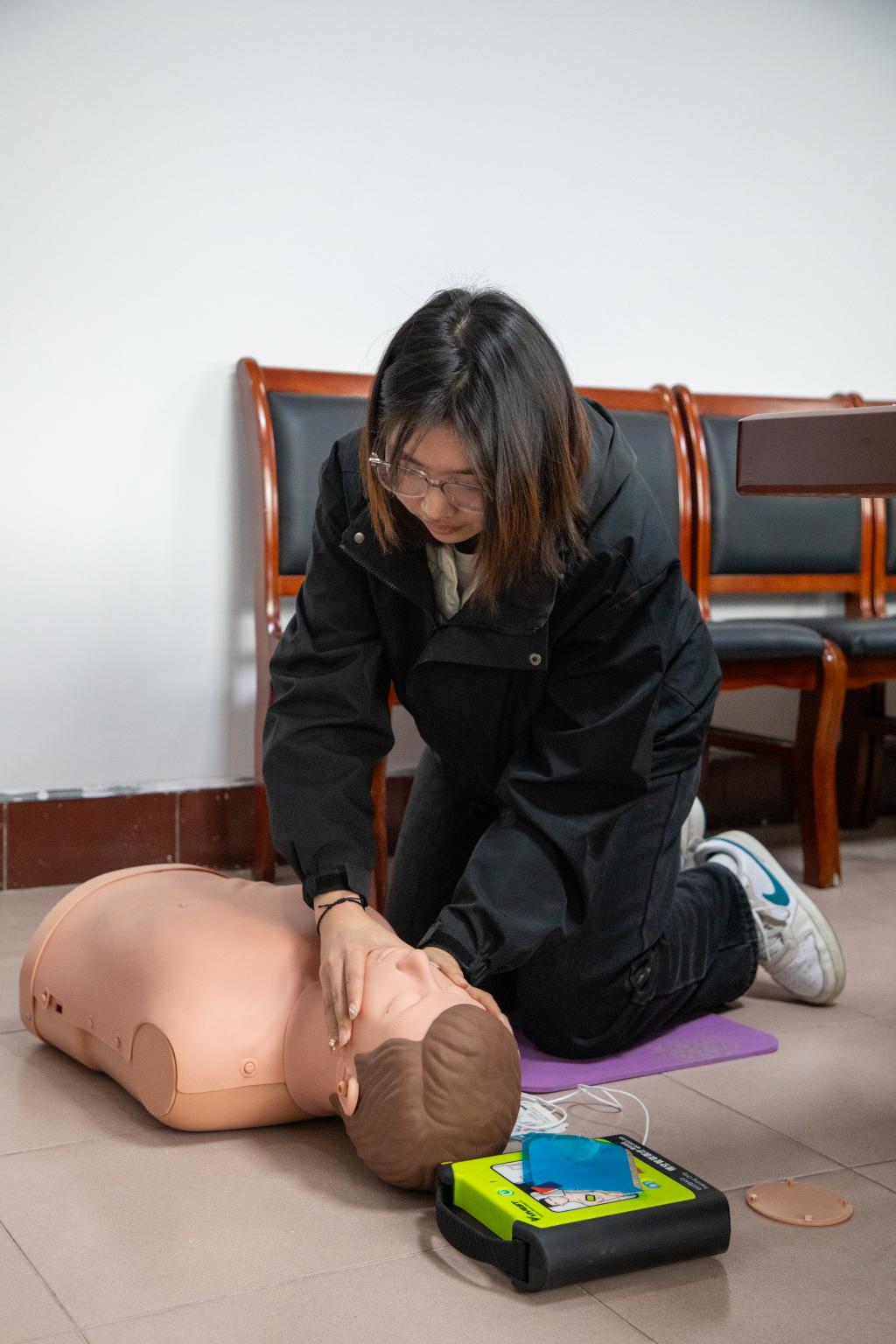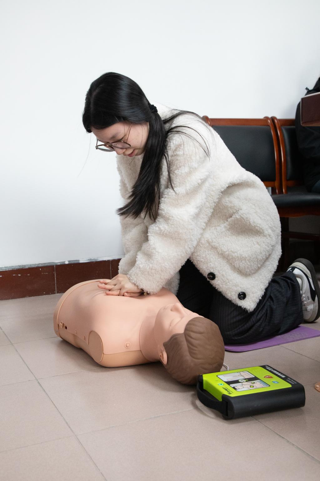 本次培训以“人人会急救,急救为人人”为主题,特邀急救领域资深讲师授课。课程涵盖心脏骤停识别、CPR规范操作、AED设备使用等核心内容。培训中,讲师结合真实案例,强调“黄金四分钟”对挽救生命的关键作用,并利用人体模型现场演示胸外按压、人工呼吸及AED操作流程。学员分组练习,讲师逐一指导,确保动作标准、技能掌握到位。培训现场互动积极,学员们纷纷表示,将把所学知识传递给更多同学,推动校园急救意识普及。经过三小时高强度训练与严格考核,20余名学员全部达标,他们将在校内承担应急志愿服务,并协助开展急救知识普及工作。