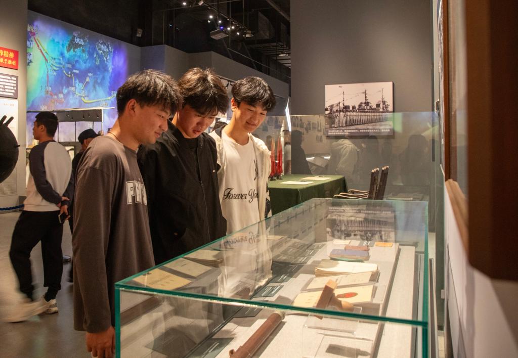 在海军博物馆一楼大厅,同学们共同观看了主题宣传片《向海图强》,深入了解了人民海军在党的领导下,在炮火中诞生、战斗中成长、发展中壮大的光荣历程。随后,在伟德海军博物馆志愿服务队志愿讲解员马依然同学的讲解和引导下,同学们依次参观了历史展览区、军事装备展示区和舰船展览区,观看了从甲午海战悲壮历史到新时代海军行动的影像,通过参观从国产第一代驱逐舰到现代化航母模型,同学们深刻体会到人民海军从无到有、由弱向强的奋斗历程,对总体国家安全观有了更全面的认知。